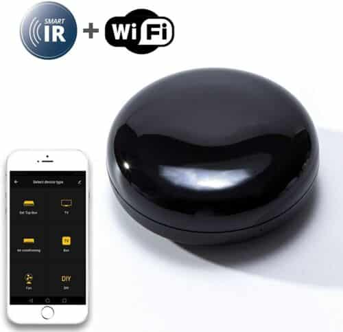 The MOESGo Infrared Smart Controller is a handy all-in-one IR remote control that controls TVs, air conditioners, fans, DVD players, and set-top boxes. Compatible with Alexa and Google Home, it also supports a wireless remote control using the Smart Life app. It supports almost any device in a room less than 16 square meters, and includes a special DIY function.