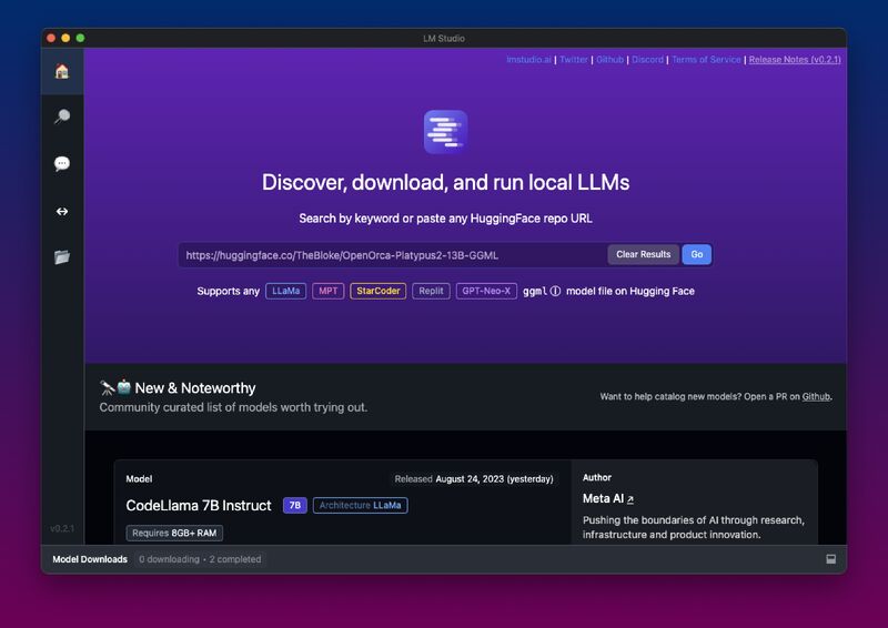 LM Studio is an easy-to-use software tool designed for running large language models on your computer. By eliminating external platforms like Hugging Face or GitHub, this user-friendly program provides users with access to an extensive library of models they can explore and download from. Plus, its intuitive user interface makes discovering models simple while offering valuable details about each model, including size and ratings information.