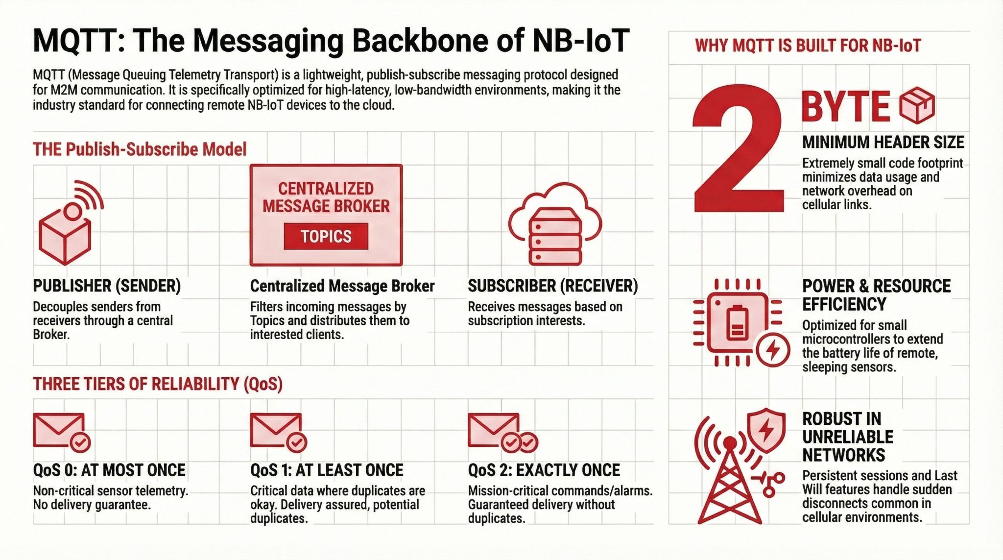 This comprehensive guide will delve into what makes MQTT so uniquely suited for NB-IoT. We will explore its publish-subscribe model, dissect its critical Quality of Service (QoS) levels, and examine the inherent efficiencies and robust features that have cemented its status as the industry standard for connecting remote NB-IoT devices to the cloud. If you are building anything in the connected device space, especially applications demanding longevity, reliability, and cost-effectiveness in low-bandwidth cellular links, understanding MQTT is not just beneficial—it’s essential.