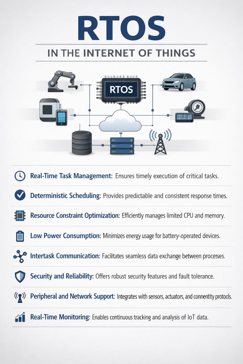 An RTOS plays a foundational role in enabling the deterministic, low-latency, and reliable execution demanded by modern IoT architectures. Its significance spans task scheduling, memory optimization, power efficiency, and secure inter-process communication, ensuring that resource-constrained embedded systems meet strict timing requirements without compromising performance or stability. As IoT ecosystems expand into industrial automation, smart mobility, healthcare devices, and edge computing, understanding the architectural significance of RTOS becomes essential for every embedded systems and electronics engineer. This comprehensive guide will outline the core functional layers and engineering considerations that make RTOS a critical backbone of intelligent connected systems.